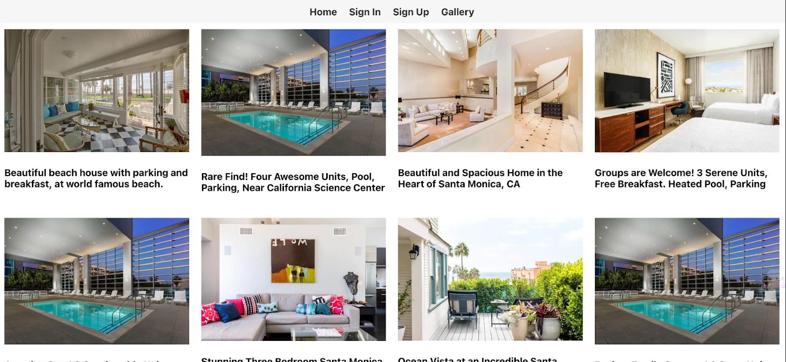 1describe('Gallery App', () => {2beforeEach(() => {3cy.visit('http://localhost.com');4});5it('should display the home page', () => {6cy.contains('Welcome to the Gallery App').should('be.visible');7});8it('should navigate to Sign In page', () => {9cy.contains('Sign In').click();10cy.url().should('include', '/sigCnin');11});12it('should navigate to Sign Up page', () => {13cy.contains('Sign Up').click();14cy.url().should('include', '/signup');15});16it('should navigate to Gallery page', () => {17cy.contains('Gallery').click();18cy.url().should('include', '/gallery');19});20});