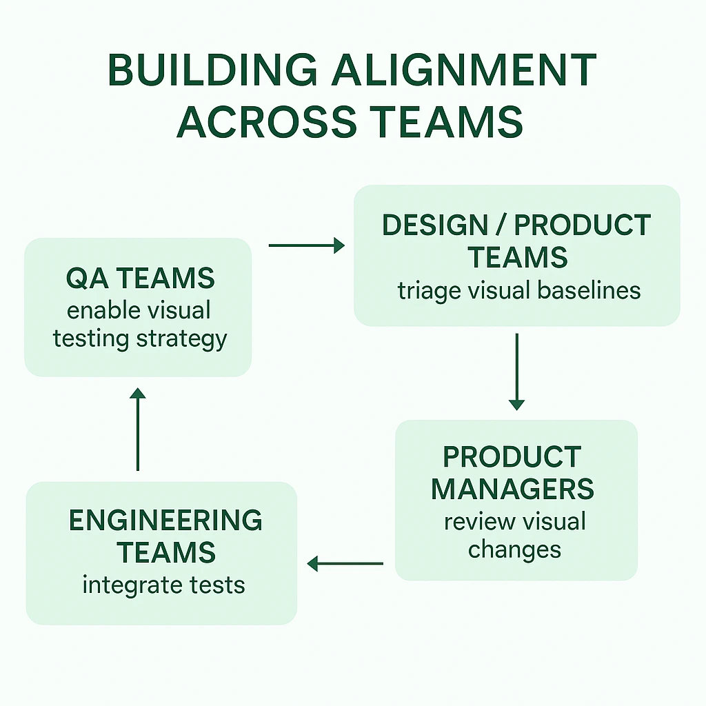 For a successful adoption, more than the tools, a mindset shift across teams is non-negotiable. When QA, development, product, and design teams collaborate with clear ownership, visual testing can become a seamless part of the entire delivery experience.