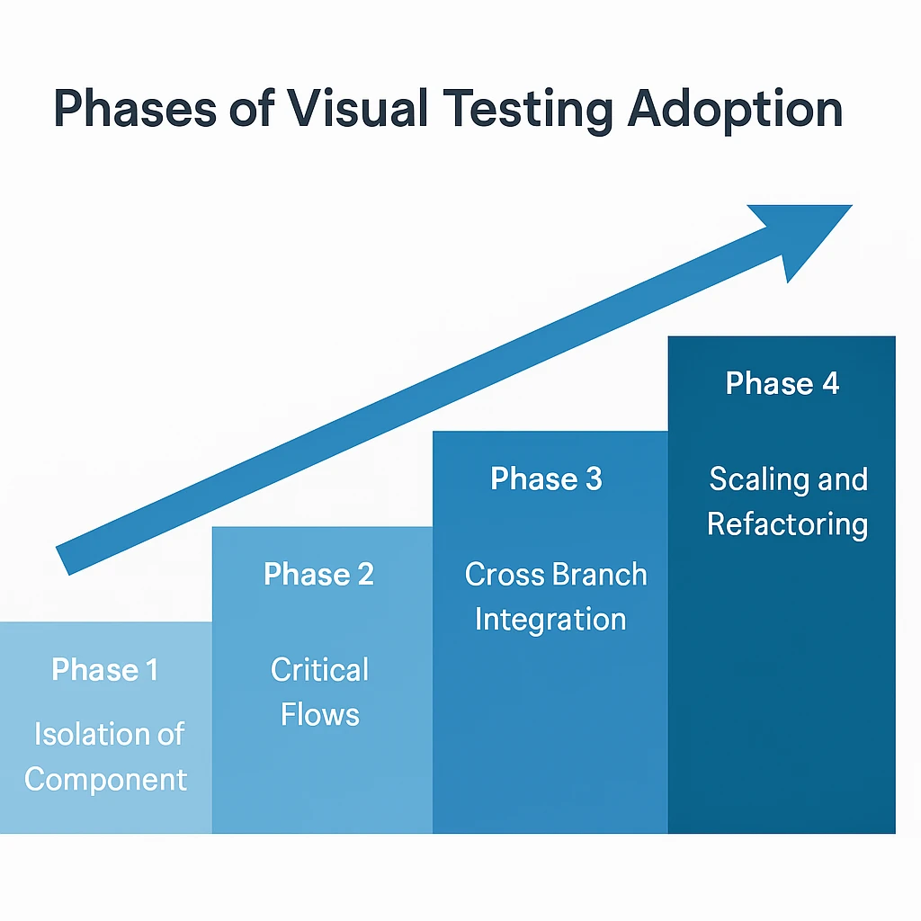 Visual testing is much more effective when introduced in a phased manner. Instead of attempting to cover the whole application upfront, teams should start by identifying high-impact areas and expanding the test coverage incrementally. Start with either component-level tests for reusable web components using tools like Storybook or the top 10-25 high-traffic or high-risk pages/ screens (the “hot spots”) of your application where visual regression is most likely to affect the business outcomes.